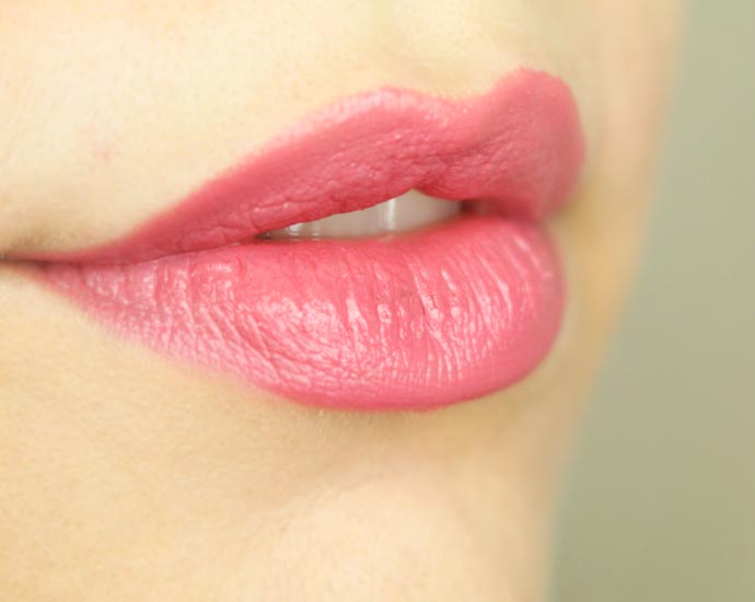 O Carefree Coral possui um tom de rosa honeysuckle. É um rosa cor de boca mais amarelado/corado. Batom que as noivas amam!
