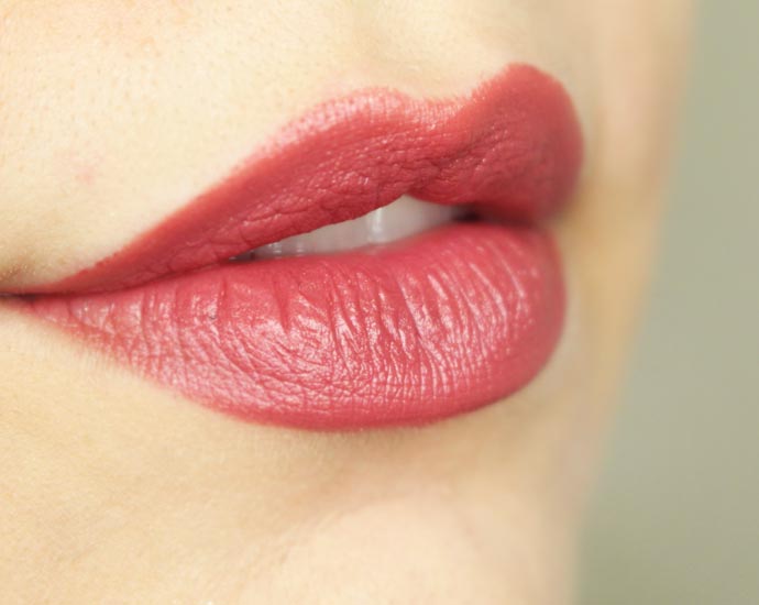 Os batons possuem textura macia e excelente pigmentação. Cobrem totalmente os lábios e duram relativamente bem.